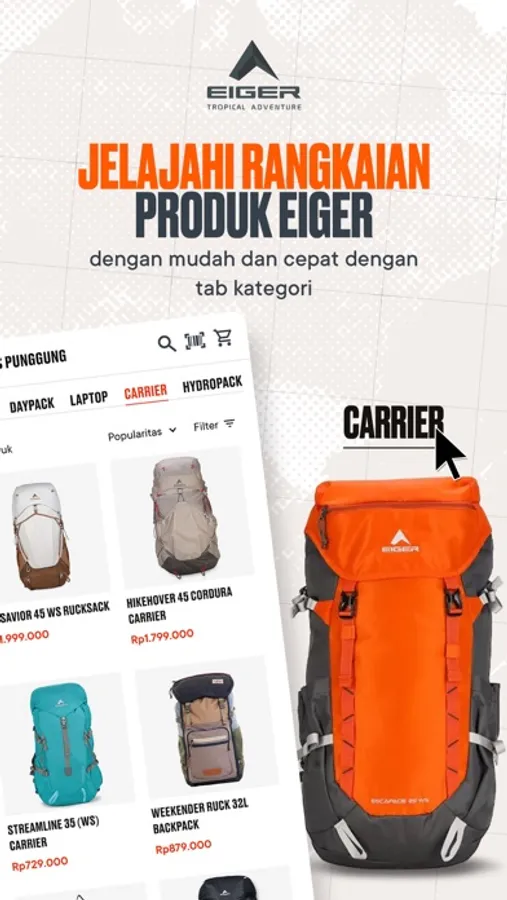 Belanja EIGER lebih mudah dengan aplikasi. Download sekarang!
