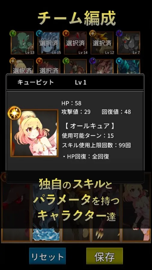 ・それぞれ独自のスキルを持つモンスターのチームを編成して、ダンジョンをクリアしよう!