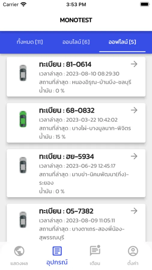 แสดงสถานะ ความเร็วระดับน้ำมัน