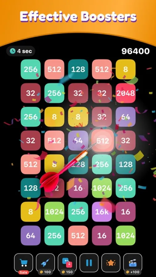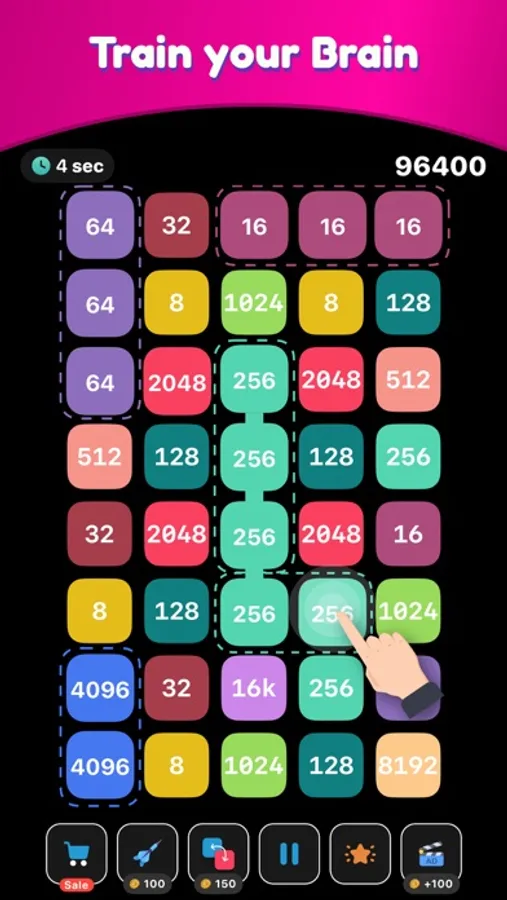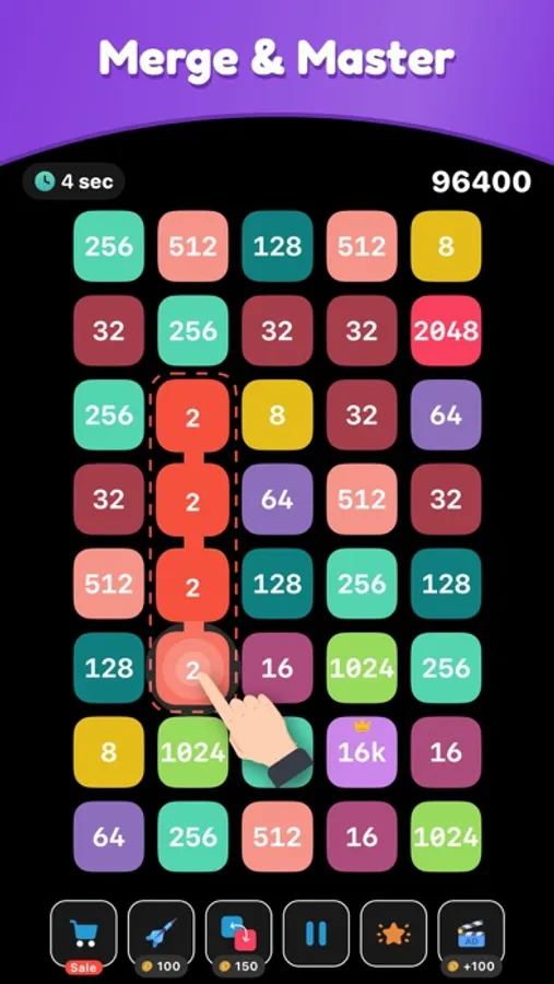- Shift identical numbers in any of the eight directions (up, down, left, right, or diagonally) to initiate merging.
