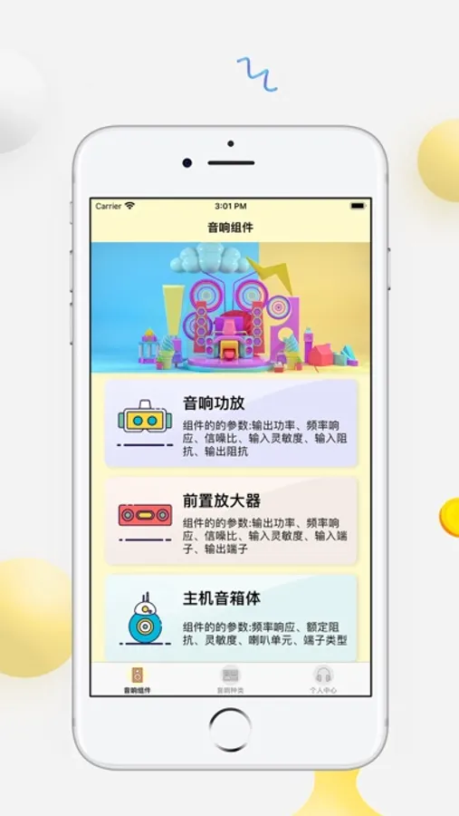 通常所讲的组合音响有台式组合音响和落地式组合音响两大类。由于要求组合音响有比较高的声音质量,所以它的两只音箱一般体积都较大。主要包含:音响功放、前置放大器、主机音响体、音响组件、数字信号处理器(DSP)、音频接口。