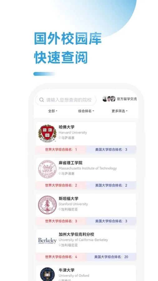 提供更全更新的海外高校信息查询,院校简介、排名、申请概况,了解热门申请院校信息。