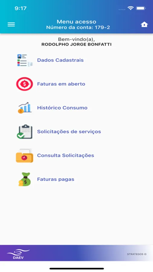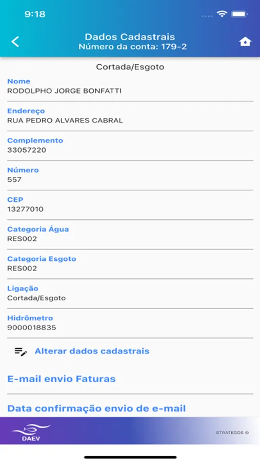 - Alerte o DAEV sobre eventuais ocorrências, serviços ou reparos na rede de água ou esgoto, podendo fotografar e informar localização;