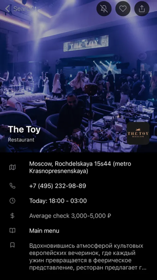 «OnParty» — is the most complete events of Moscows nightclubs, restaurants, bars and karaoke. In the application you will find the schedule of club concerts, fashionable parties and noisy hangouts in the capital. In «OnParty» is only up-to-date information about which establishments are open today and where you can go right now.