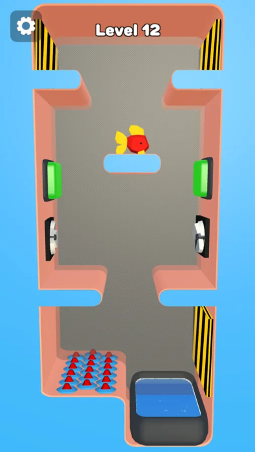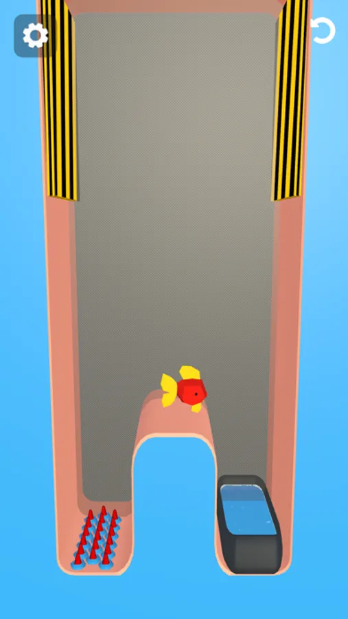 Place the punch on the right wall so that it punches the fish and makes her drop into the water