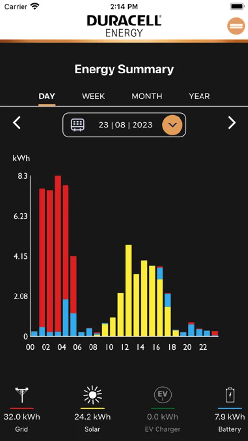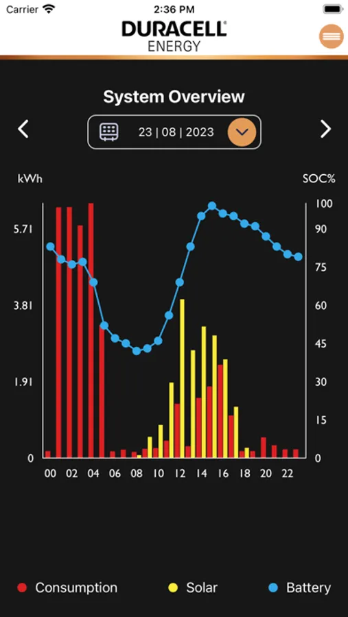 View your household consumption and the power flowing through you Duracell connected devices, giving you a clear understanding of solar generation, battery usage and grid energy usage.