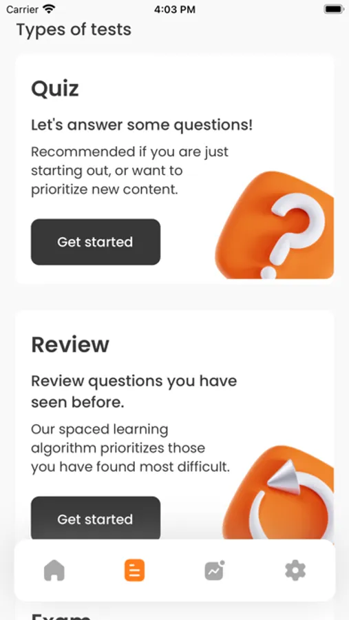 - Multiple testing modes with algorithms specific for testing, revision, and exam simulation