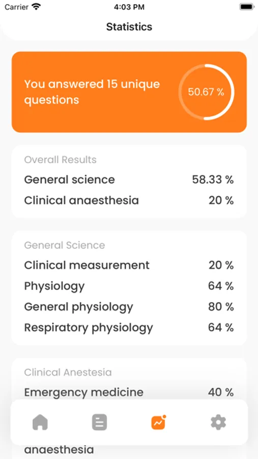 - Customizable subject categories (physics, physiology, pharmacology, clinical anaesthesia, intensive care, obstetrics, etc)
