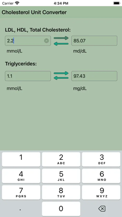 No fuss cholesterol unit calculator. Fast conversion from mg/dL to mmol/L and vice versa.