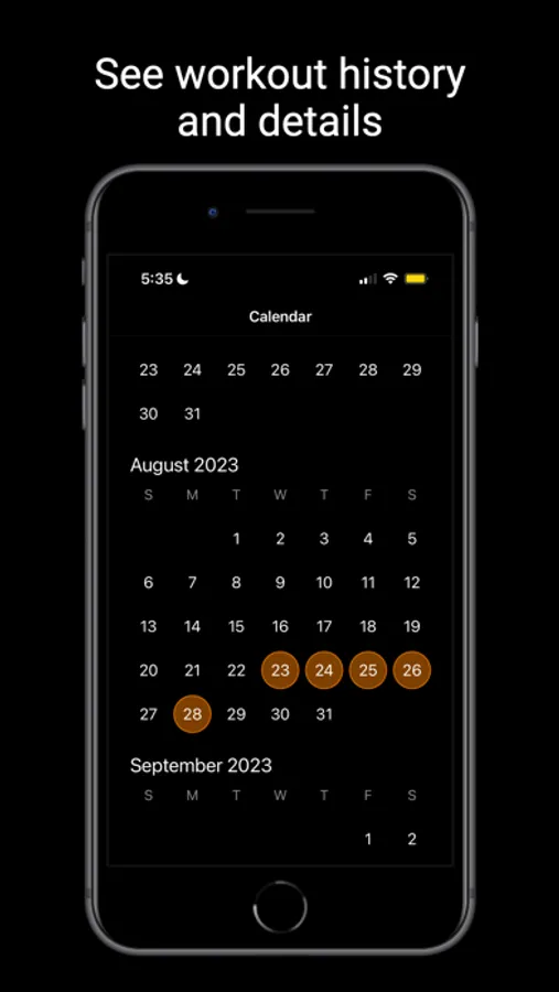 Detailed Progress Monitoring: Deep-dive into your workout history with an interactive calendar. Visualize specific workouts to assess and enjoy your progress.
