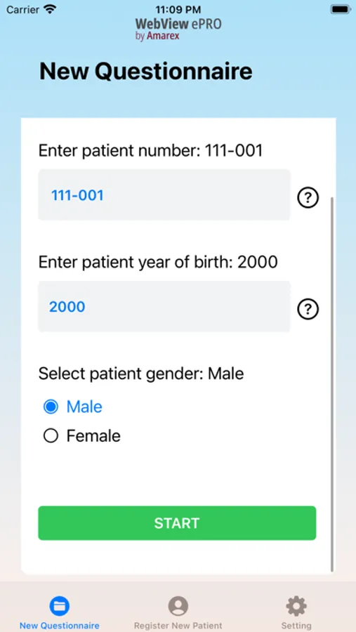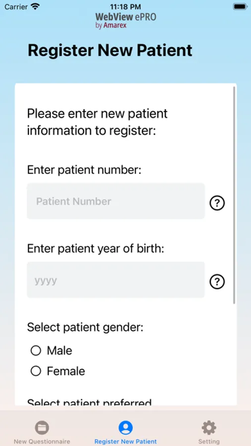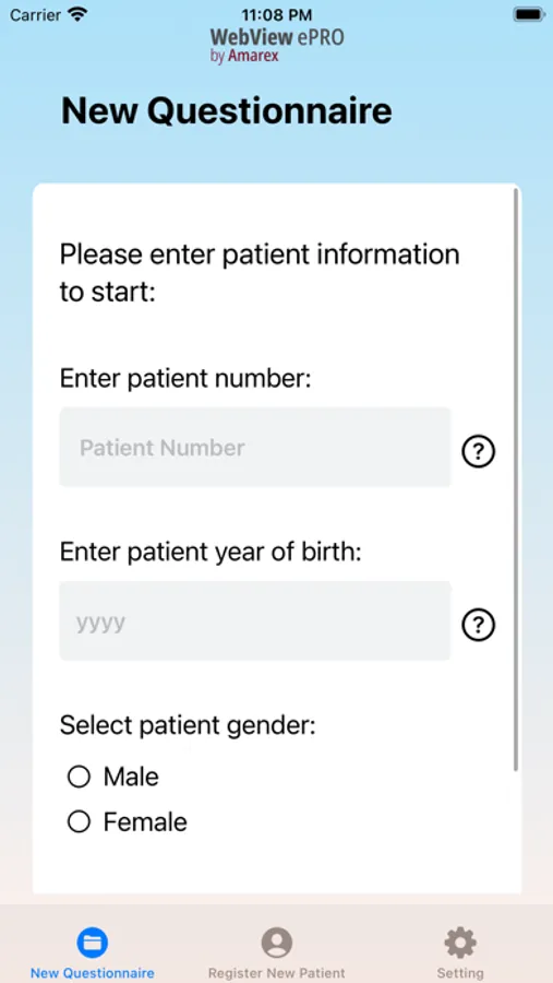 WebView ePRO is a proprietary software application developed and supported by Amarex Clinical Research that is designed to collect health outcomes directly reported by the patient. An internet connection is required for access and data submission.