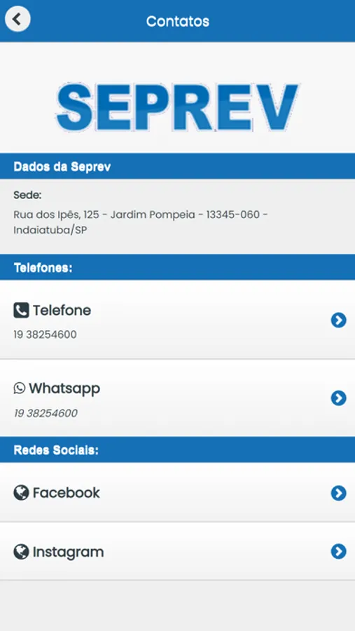 Importante: este é o aplicativo oficial da SEPREV, desenvolvido e oferecido pela fornecedora de software contratada Fácil Informática. Para entrar em contato conosco, faça uma avaliação ou envie um e-mail para mobile@facilinformatica.com.br.