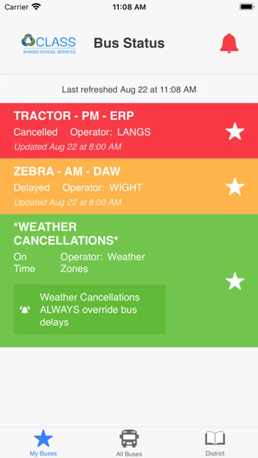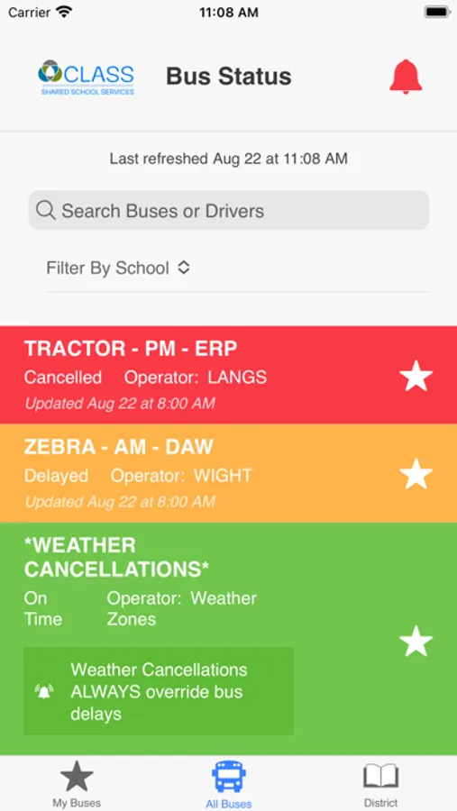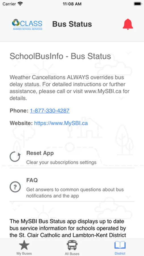 SchoolBusInfo — Bus Status 4 provides up to date bus service information for schools in the St. Clair Catholic and Lambton-Kent District School Boards. Choose which buses to follow, and receive push notifications when one of your buses is cancelled, delayed, or early!