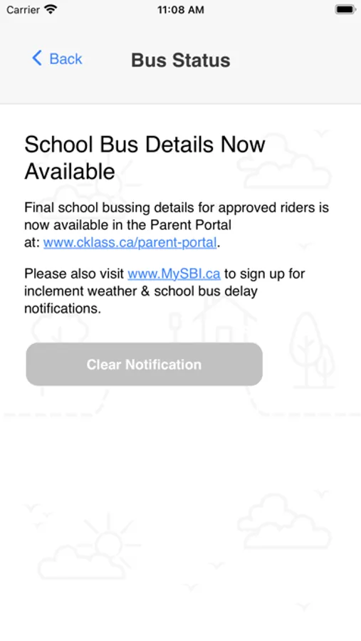 Only bus delays of 10 minutes or greater will be posted. For further information, including your bus symbol(s), please visit https://cklass.ca/services/student-transportation/delays-cancellations/
