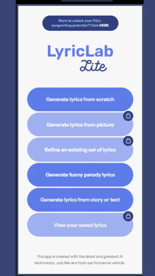 - Lyrics Redefined: From heartfelt ballads to hilarious parodies, LyricLite crafts lyrics that match your vision. Turn everyday stories into lyrical masterpieces.