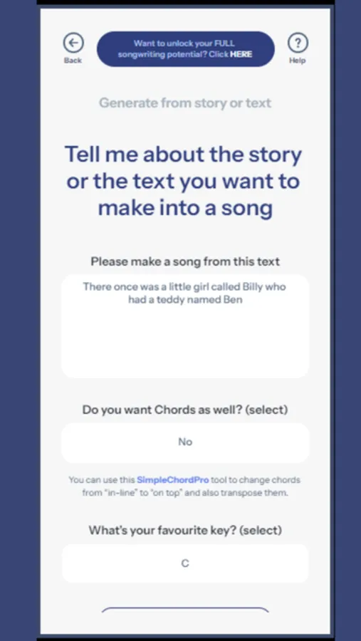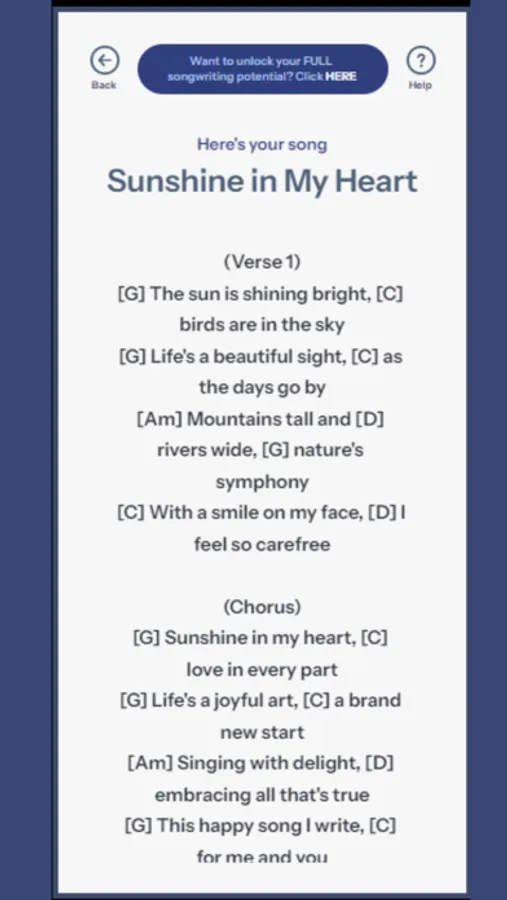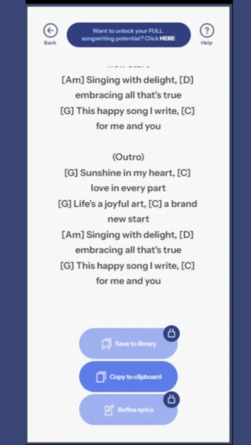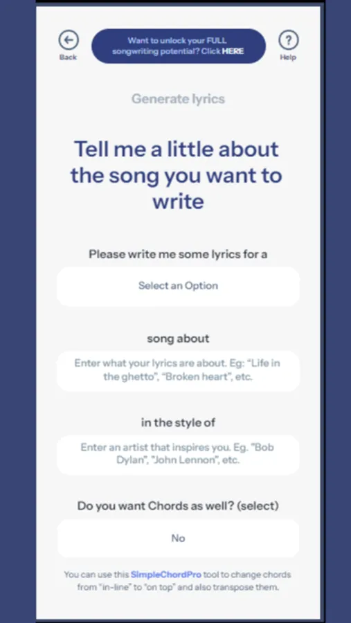 - Chords on Demand: Struggling with chord progressions? LyricLite generates harmonious chords tailored to your style, instantly enhancing your compositions.