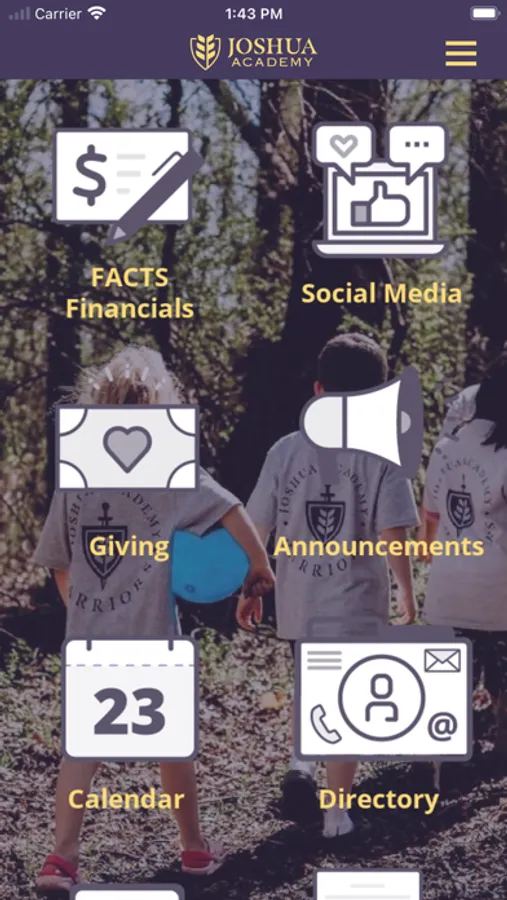 Welcome to the official app for Joshua Academy, Van Buren, AR. This app is a one-stop-shop for our parents, students, and staff, with anytime, anywhere access to all the tools, content, and communications needed to stay connected and engaged. This app is our primary communication portal and provides easy access to Announcements, Calendar of Events, Student Grades and Homework, Activities, FACTS Financial and so much more!