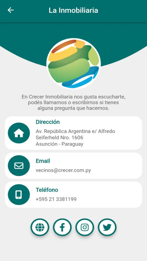 Bienvenido a la aplicación de Crecer Inmobiliaria, este servicio te acercará más a tu inmobiliaria además de darte transparencia y seguridad en el pago de tus cuotas, novedades y nuevos lanzamientos de la empresa así como la comunicación con nuestras redes sociales.
