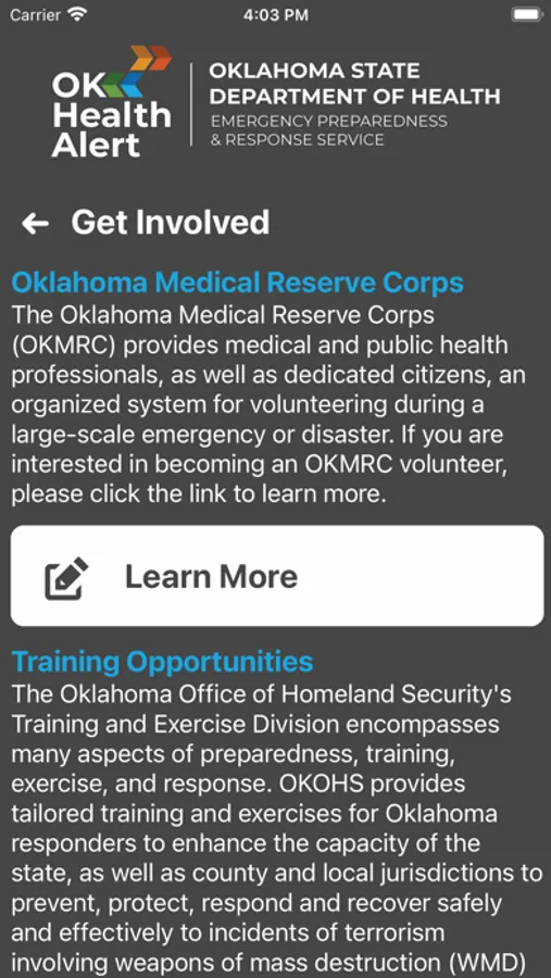 Oklahoma HealthAlert is an innovative application dedicated to strengthening Oklahoma's response to public health emergencies. As a premier emergency management tool, it is pivotal in connecting public health responders with vital resources, facilitating fast and efficient emergency response.