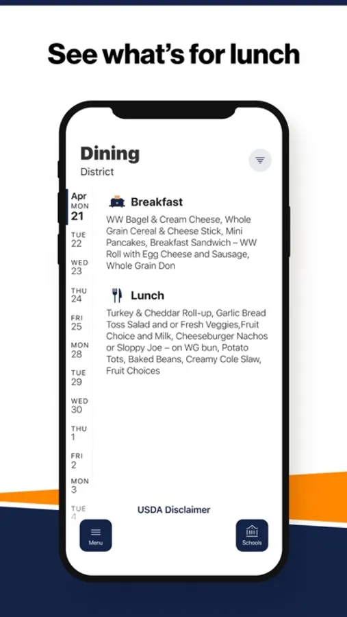 The event section shows a list of events throughout the district. Users can add an event to their calendar to share the event with friends and family with one tap.