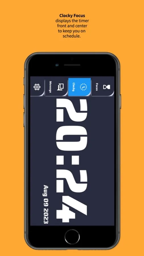 Clocky Focus is the app that helps you stay focused and on track by combining a bold clock, countdown timers, and full screen messaging. Whether you're a student, professional, or anyone who wants to better manage their time, Clocky Focus declutters your phone and displays the essential info you need.
