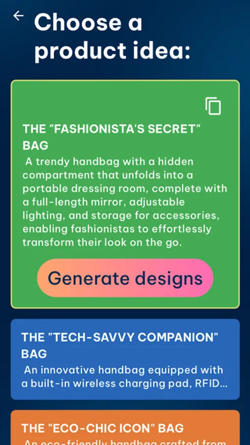 • Generate Product Designs & Ideas in SECONDS.