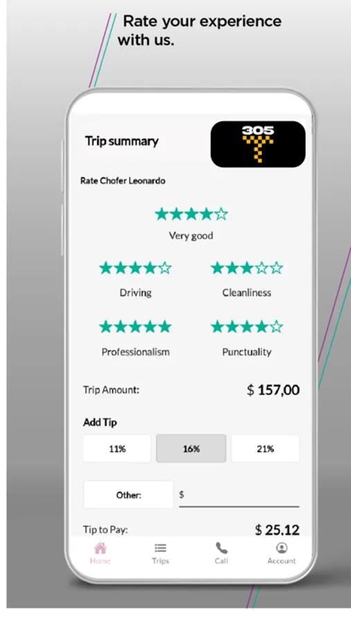 . Rate your trip and, if you wish, leave a tip for the driver.