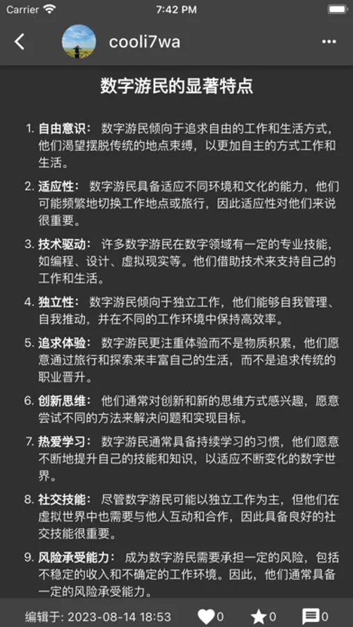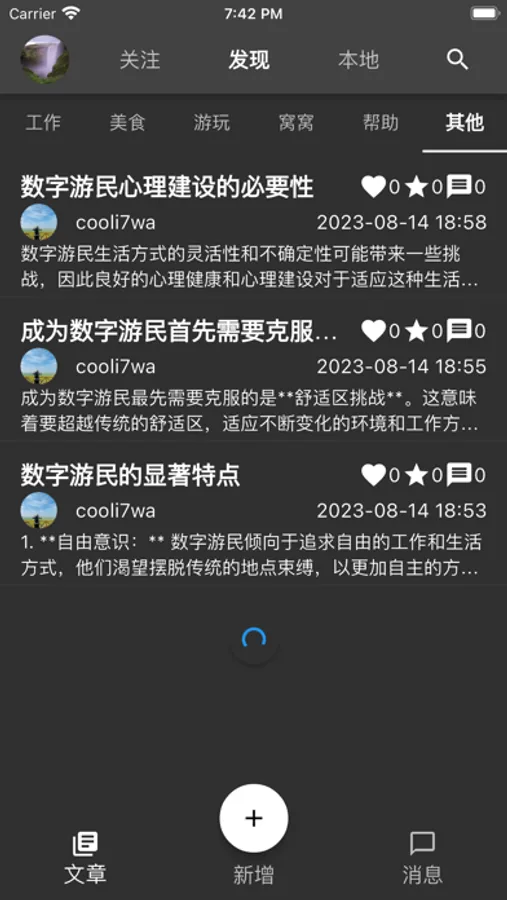 “悠游”是“数字游民”的专属平台,可以分享生活、交友、寻求帮助等。