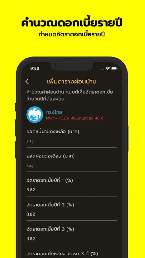 4. บันทึกข้อมูลเพื่อใช้ในอนาคต: RateCalc+ ช่วยให้ผู้ใช้สามารถบันทึกข้อมูลการคำนวณเพื่อใช้ในอนาคตได้ เพื่อทำการแก้ไขหรือปรับแก้แผนการผ่อนชำระตามความเหมาะสมและเปลี่ยนแปลงที่เกิดขึ้น