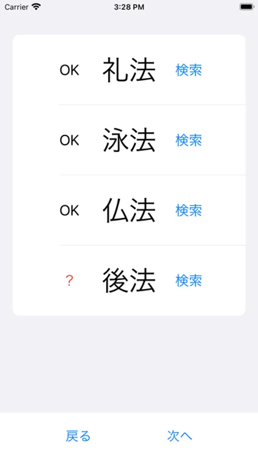 ・検索ボタンをタップすると該当語をネットで検索し意味の確認やその語が存在するかを確認できます
