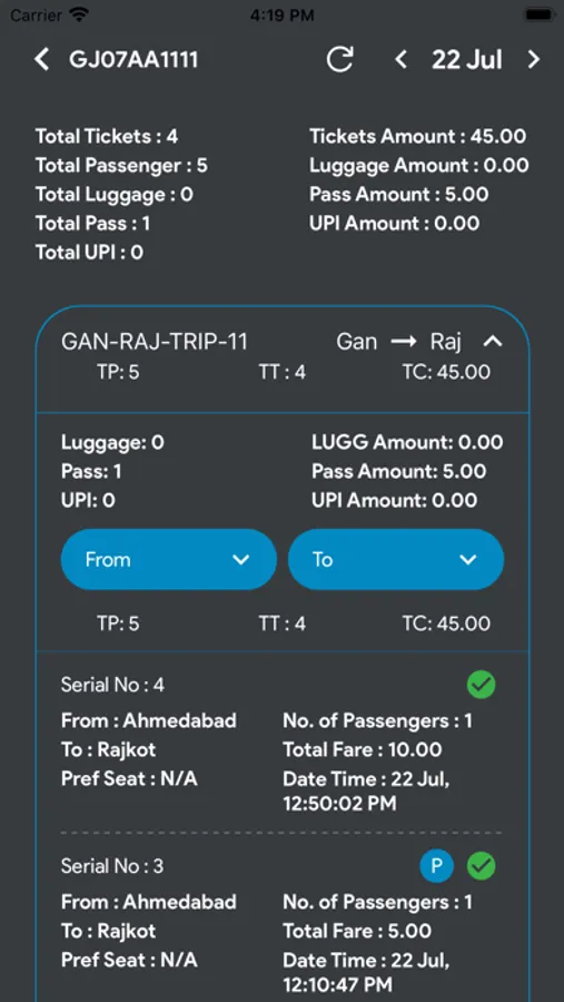 This app verifies tickets issued by the busser app as well as issues tickets to the passengers on board. This app also provides reports and statistics about tickets collection. This app is used by the conductor/owner.Please contact +918589934777, support@kaippans.com for creating a login for your bus