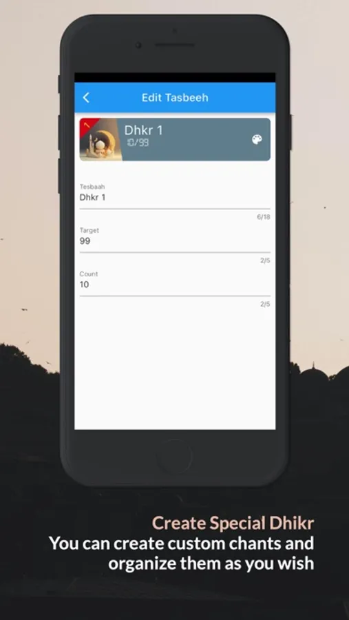 - Even if you close and open the application, your dhikrs will not be lost, you can continue from where you last left off.