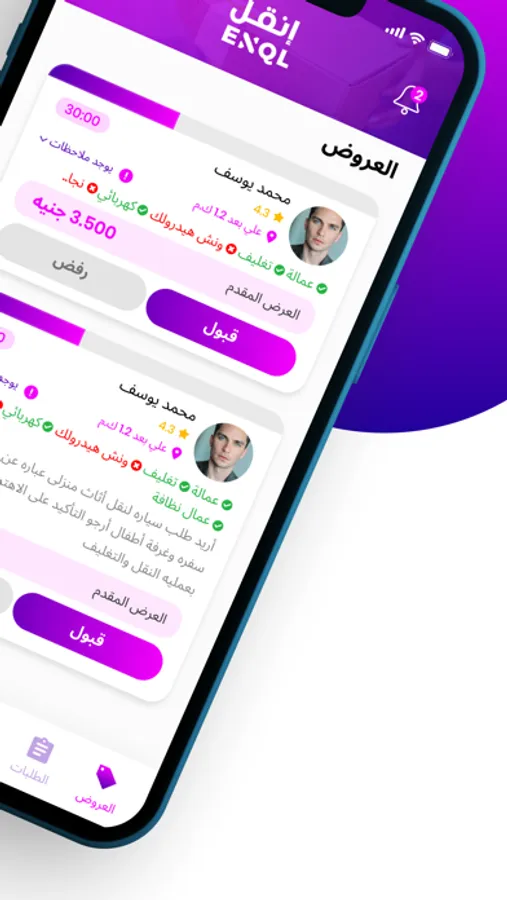 باستخدام تطبيق انقل، يمكنك اختيار سعر نقل الشحنة المناسب لك من عدة عروض على التطبيق، واختيار نوع الشحنة والمعايير المناسبة لنقلها طبقًا لنوعها، والعنوان الذي سيتم نقل الشحنة منه وعنوان الوصول، بالإضافة إلى تاريخ ووقت الوصول المحدد، وما إذا كان نوع الشحنة يحتاج إلى عمال متخصصين وعددهم، وغيرها من الاختيارات المتاحة لك طبقًا لنوع الشحنة المنقولة، مثل: الملابس، والمعدات، والأثاث، ومعدات البناء، والمحاصيل الزراعية، والمواد السائلة، إلخ..