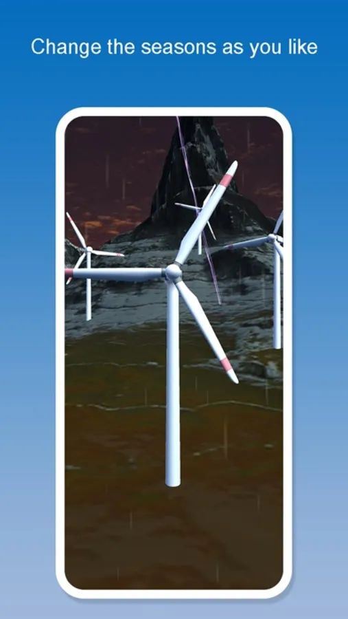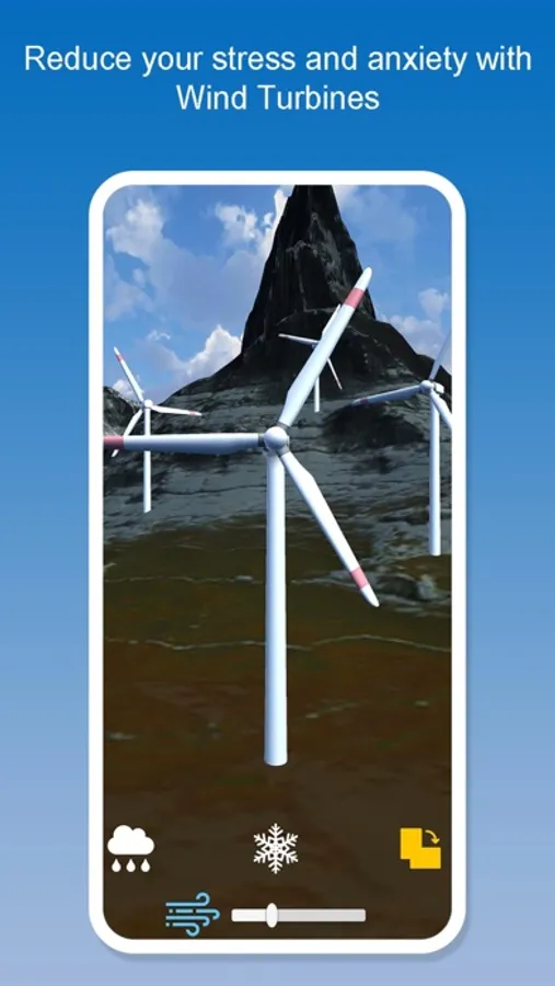 You can watch beautiful wind turbines in action, start rain or snow to create a serene atmosphere, and even change the sky to your liking. Whether you're relaxing at home or on the go, our app brings the relax with wind turbines right to your fingertips.