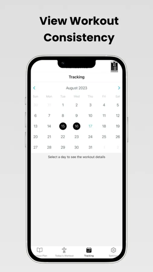 Progress Tracking: Monitor your consistency with the sets and weight tracking along with a calendar that shows days you worked out.
