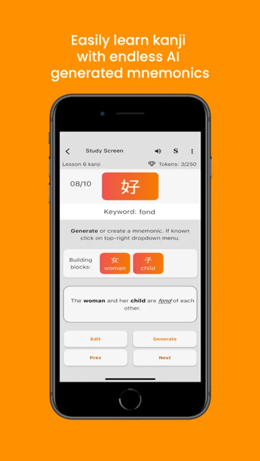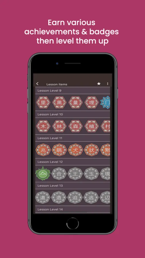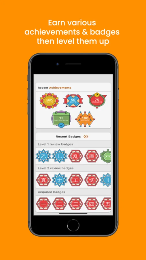 •Earn badges as you achieve milestones – study daily, answer questions, acquire characters, and create mnemonic aids. Level up your Kanji expertise while having fun.