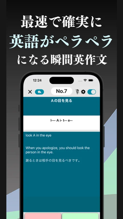 * 瞬間英作文とは、比較的簡単な日本語の文を瞬時に英訳して声に出すことで、英会話のパターンに慣れ、英会話のトレーニングをするものです。これにより「読んだり聞いたりする際に理解できる英語」を1段階上位の「スピーキングの際に自分で作り出せる英語」へと高速でアップグレードできます。
