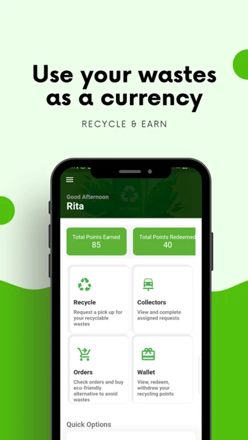 Earn points to withdraw as cash, shop, pay bills or donate to charity everytime you give your wastes to Ecobarter.