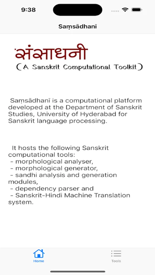 Saṃsādhanī is a Sanskrit language learning tool (computational platform) developed at the Department of Sanskrit studies for Sanskrit language processing to overcome these difficulties.