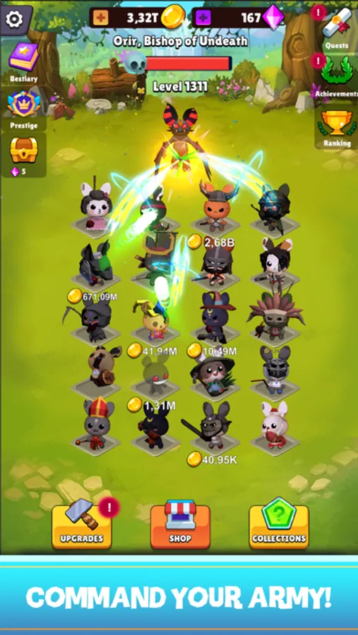 - Use rabbits to kill enemies and earn coins, buy new creatures and make even more money