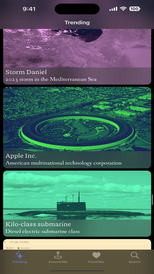 Stay ahead of the curve with our unique grid of trending articles, showcasing the most read topics of the day. From breaking news to viral trends, Wisda ensures you're always in the know. Experience the thrill of uncovering hidden gems with our exclusive 'Around Me' view, which allows you to effortlessly discover fascinating articles related to nearby places of interest. Expand your horizons and deepen your understanding of the world around you.
