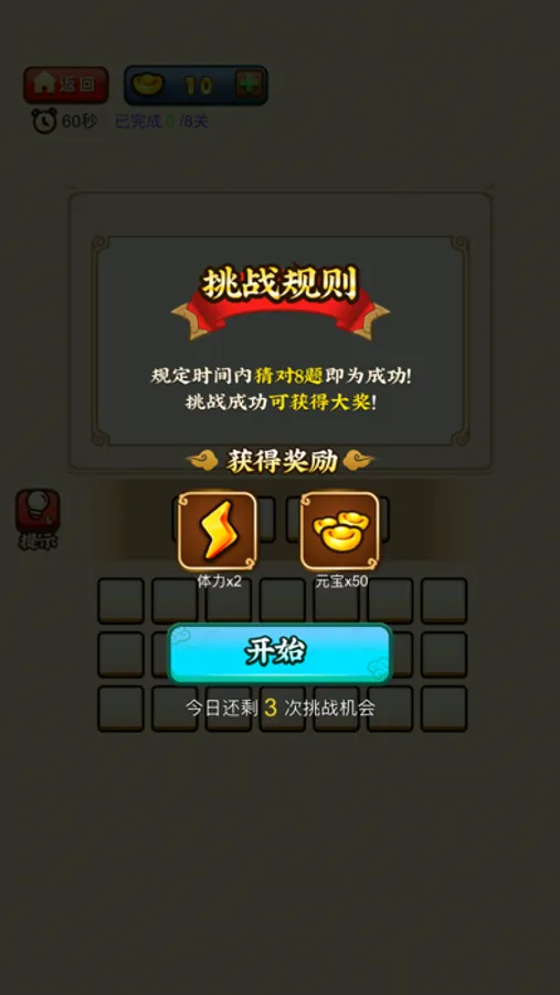 慧眼识珠的玩法是看图猜词模式。我们会提供很多图片,根据这些图片,看图来猜测对应的成语是什么。其中有一些题目,难度还是非常大的,猜不出来的话,也可以点击游戏提示,查看提示文字,或者求助于亲朋好友,大家一起疯狂猜成语!