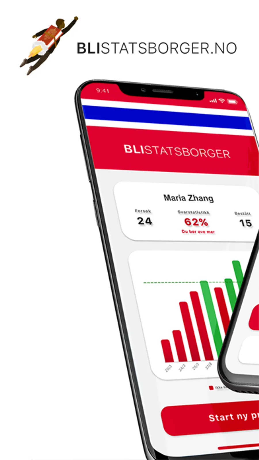 BliStatsborger-appen er en ny og morsom vei gjennom pensum. Appen er et øvingsverktøy til den obligatoriske 75-timers opplæringen i samfunnskunnskap på skolen.