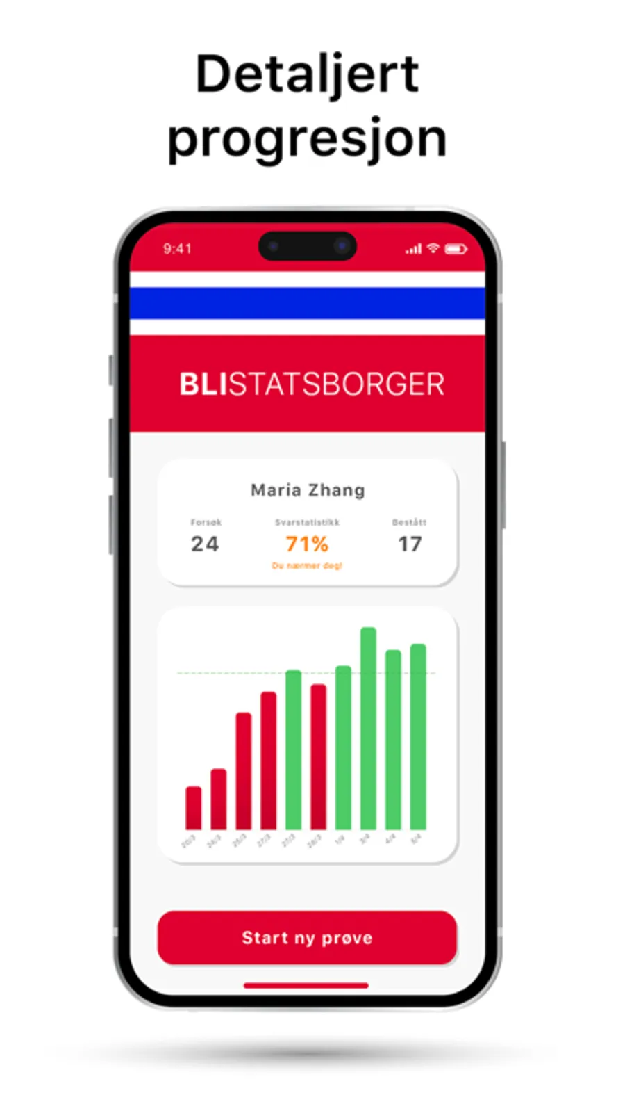 Se når du er klar. Appen fører statistikk over dine forsøk og gir deg full oversikt over fremgangen din.