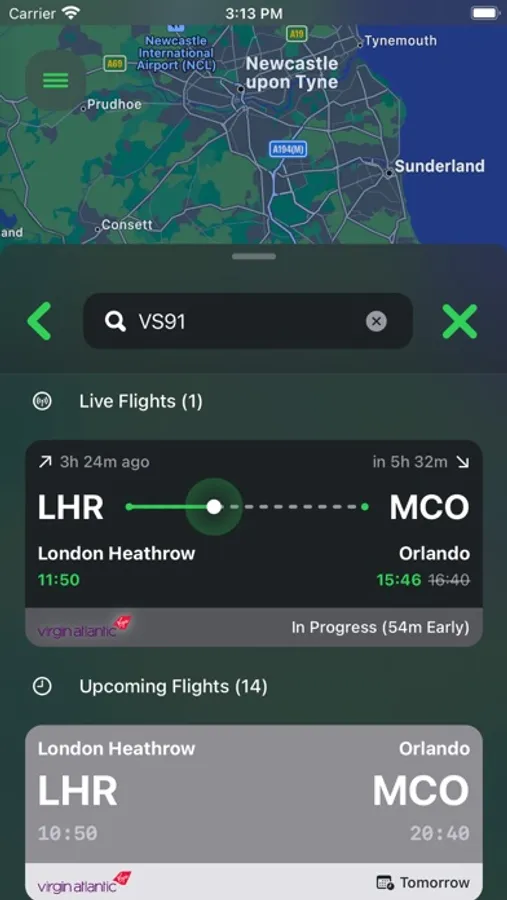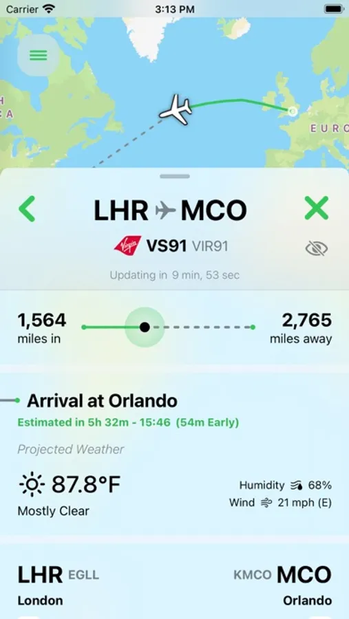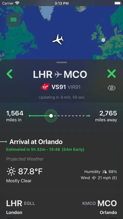 Experience flights live on an interactive map. Get insights on times, distances, and more.