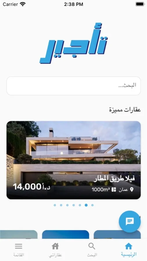 "تأجير" هو المنصة الرائدة لتأجير العقارات. ادرجوا عقاركم بسهولة أو ابحثوا عن الإيجار المثالي من خلال بحث بسيط. يعرض أصحاب العقارات خصائصهم بالصور والوصف، فيما يتصفح المستأجرون القوائم، ويتواصلون مباشرةً مع أصحاب العقارات، ويضمنون منزلهم القادم. انضموا إلى "تاجير" اليوم وغيروا كيفية تأجير وإدراج العقارات بشكل ثوري!