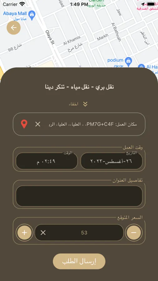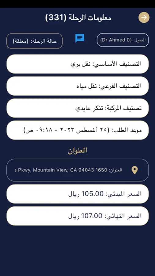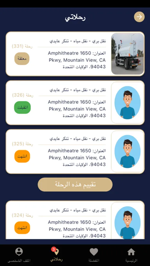 التطبيق المسوول عن خدمات النقل البرية و الثقيلة