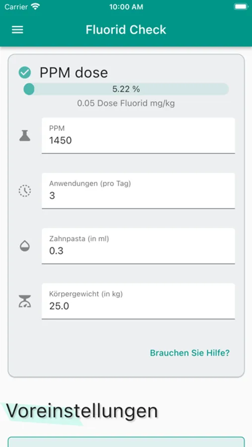 Select one of the usual presets. After loading a preset, you can change the values at your discretion. Check the packaging of your toothpaste to find out the ppm value.