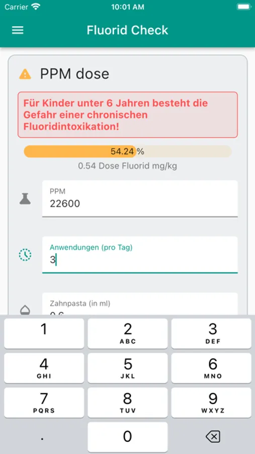 The calculator was developed with the background of having a tool to determine the toxic content of fluorides. In the past, accidents have already occurred due to overdoses.