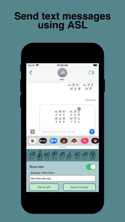 ASL Messenger allows you to create and send messages using ASL (American Sign Language) alphabet hand signs.